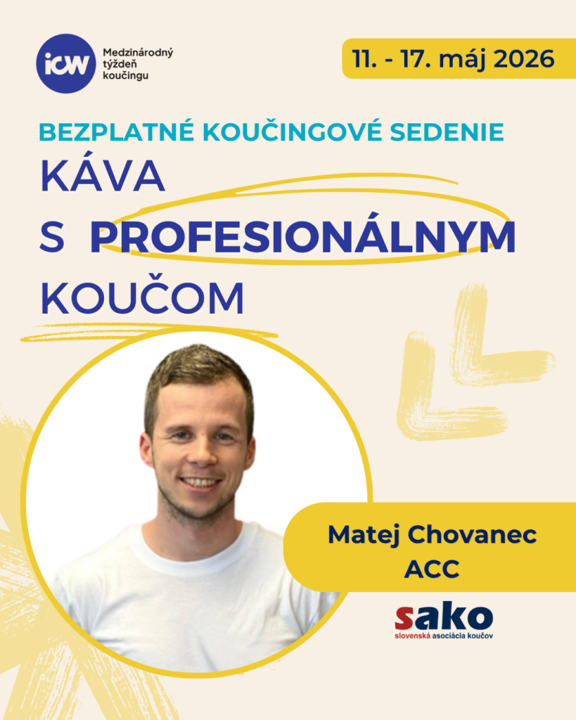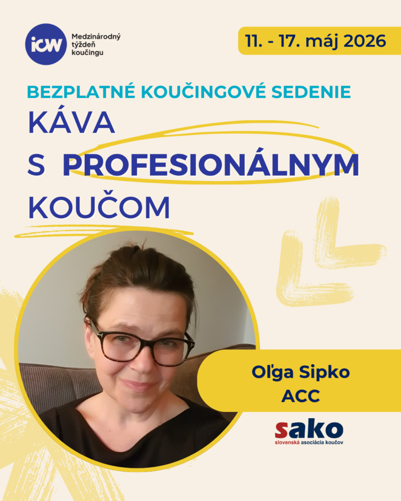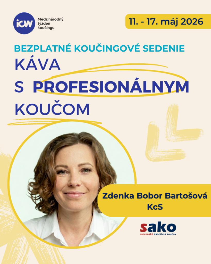 V rámci podujatia Káva s profesionálnym koučom máte možnosť zažiť bezplatné 45-minútové koučingové sedenie s profesionálnymi certifikovanými koučmi z ICF a SAKo.